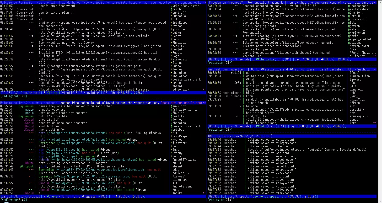 I found out recently that Cygwin has been including WeeChat in their packages, so I had to dive in. Found out two things. One, Cygwin has a new interface they install; Mintty.exe is fucking awesome. Two, WeeChat is just as awesome in Cygwin.